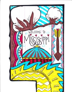 My deep rooted love of Mississippi naturally flows into my crafting ideas, and I’ve found myself drawn to projects that involve my beloved state. Some ideas began as impromptu class projects for my son, and some–like the tee shirt design above–were birthed while doodling images of the Magnolia State.